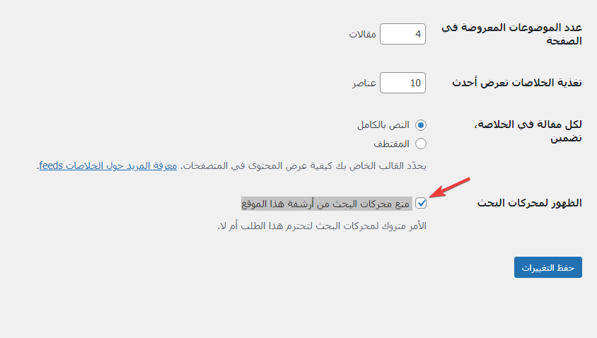 منع محركات البحث من أرشفة هذا الموقع ثم الحفظ بالنهاية لاتمام ذلك
